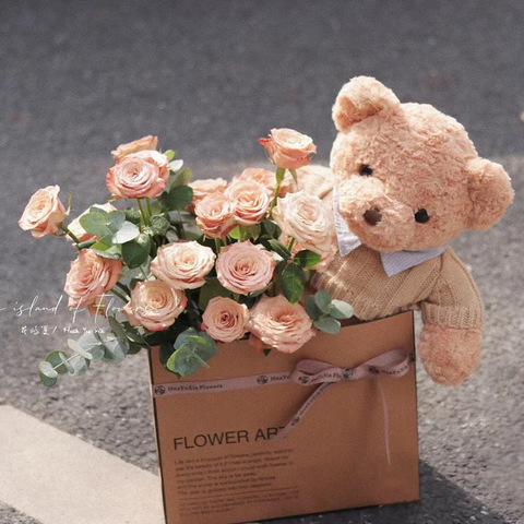Oso de peluche en camisa a cuadros y suéter de punto-Regalo de decoración rústica