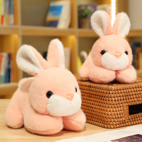 Juguete de peluche de conejo flexible en postura acostada-Conejito de peluche ultra suave para niñas y niños