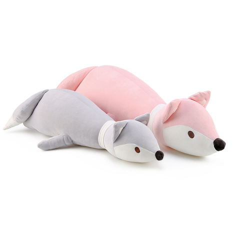 Peluche de zorro y cordero acostado, mejores amigos, animales de peluche durmientes